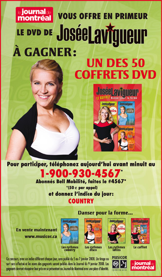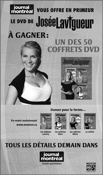 Client : Musicor Mandat : Conception et réalisation d'une 1/2 page noir et blanc et d'une 1/2 page couleur pour publication dans le Journal de Montréal Événement : Sortie des coffrets DVD de Josée Lavigueur